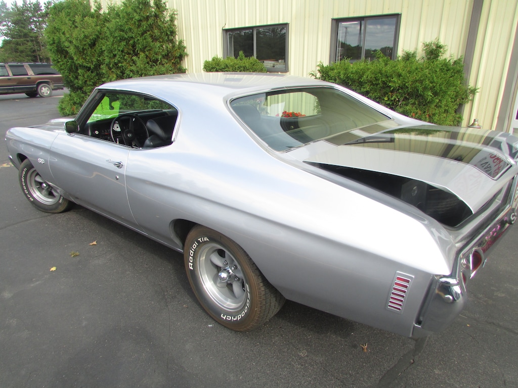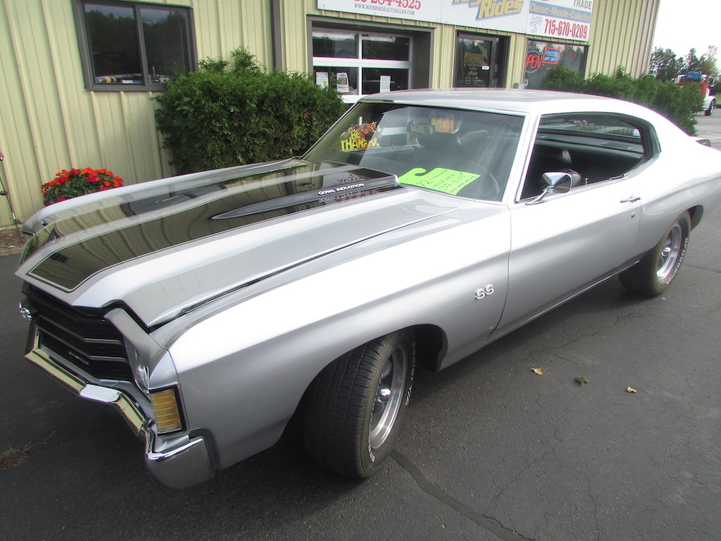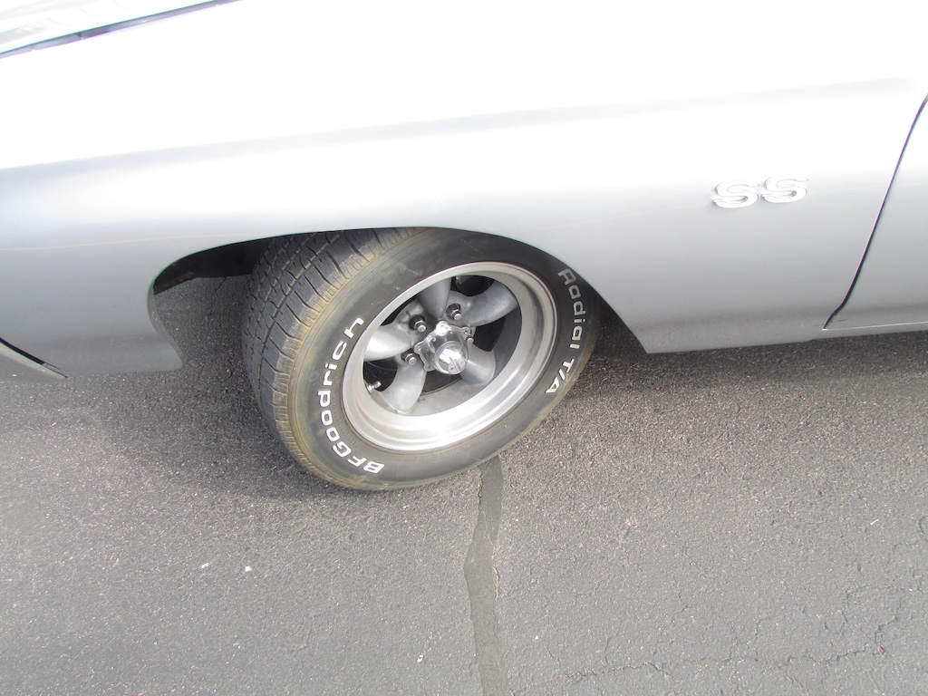 1972 Chevelle, cortez silver with SS hood and trunk stripes. Motor is GM 350 with GM Performance aluminum heads. MSD ignition along with a K-B Holly carb, power slotted disc brakes front only. We just installed full tubular A-arms along with Hotchkiss style stabilizers. You can lay it in to a corner any way you want to. Turbo 350 with a stall converter back to a 10 Bolt differential which is posi. The underside is absolutely unmolested as the pictures show. Near new BFG's on American Racing wheels. This nice Chevelle can be purchased for $32500.00. Phone 715-284-4525.