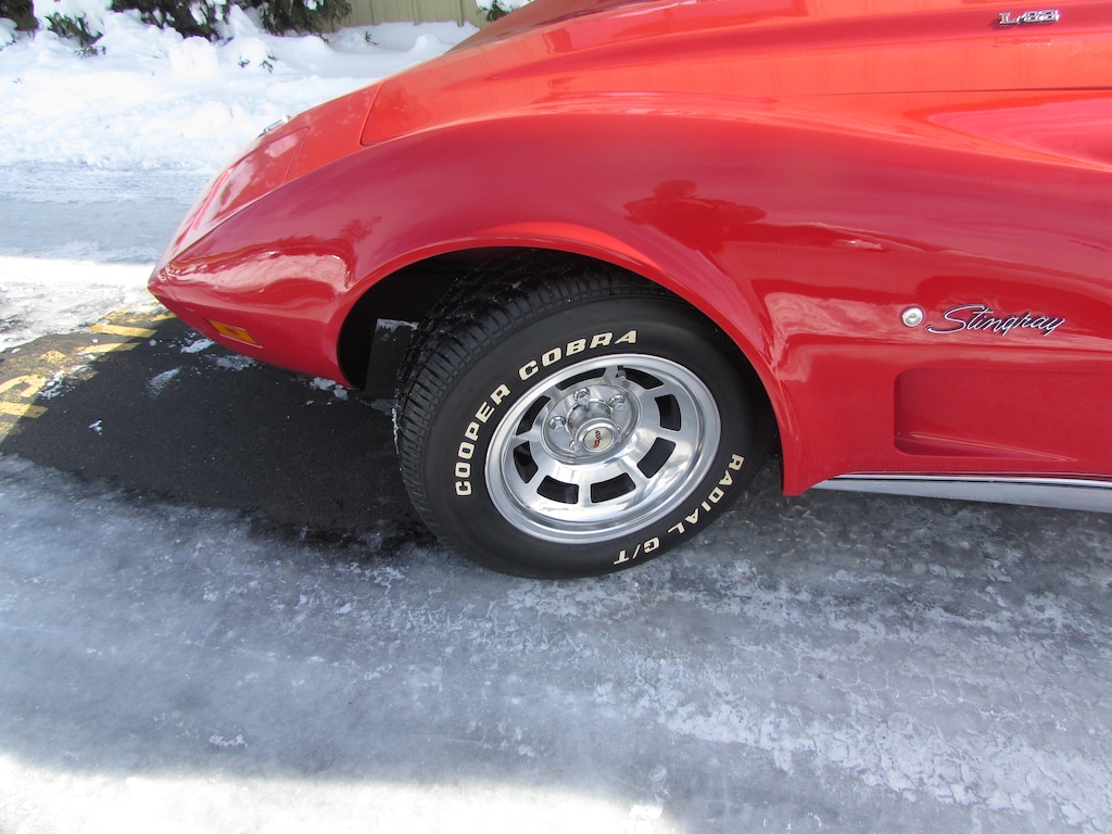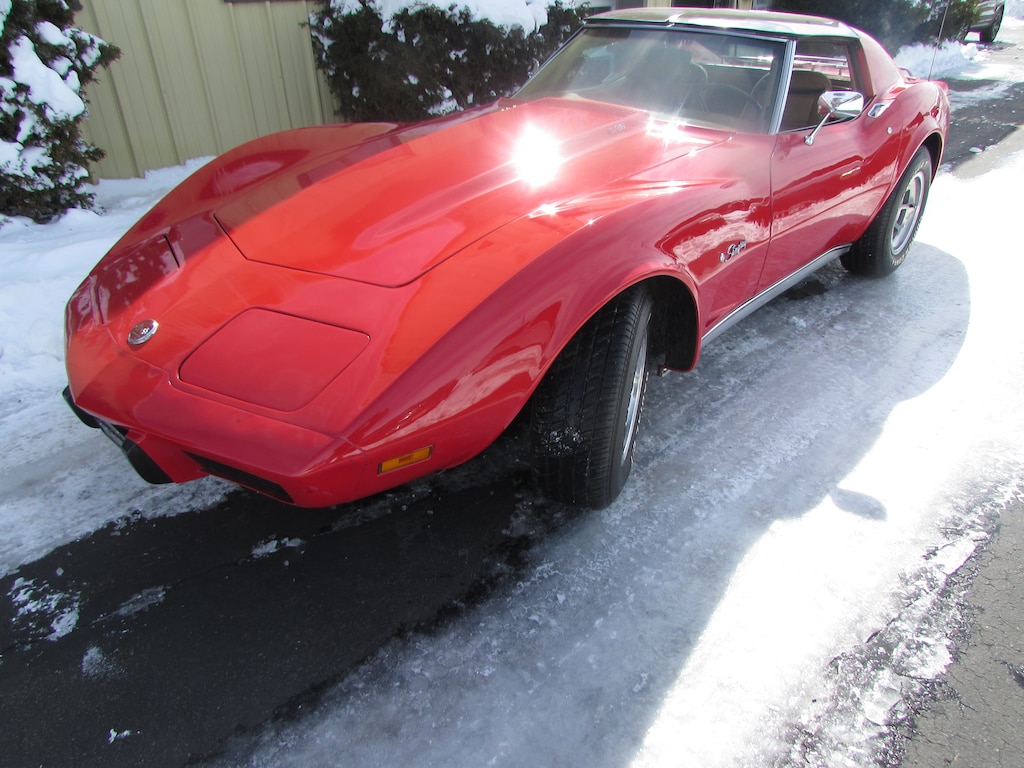 1975 Corvette L-82, local trade with mileage at 98,000, miglia red with very nice taupe leather seats, Glass T-Tops and a trunk rack. This car is rust free on the underside. Recent shocks and rear joints were just done. Near new Cobra tires sitting on highly polished alloy wheels. I just installed a new D-A-6 air compressor and converted it to 134A. The headlights open and close very well. Also, a recent Griffin aluminum radiator was installed. This good looking C-3 car can be owned for only $14999.00. Phone 715-284-4525.