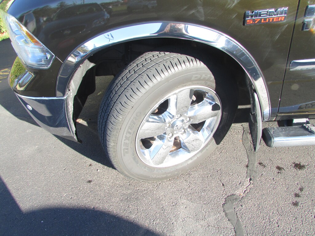 2014 RAM Crew Cab 4X4. This is a local trade that was sold and serviced here every 3000 miles. Color is black gold with matching cloth interior. Near new tires on n ice chrome wheels, 5.7 Hemi power, fully equipped, recent pads and rotors were installed in our shop. Roll-up tonneau cover also. This good looking RAM can be purchased for only $16999.00. Phone 715-284-4525.